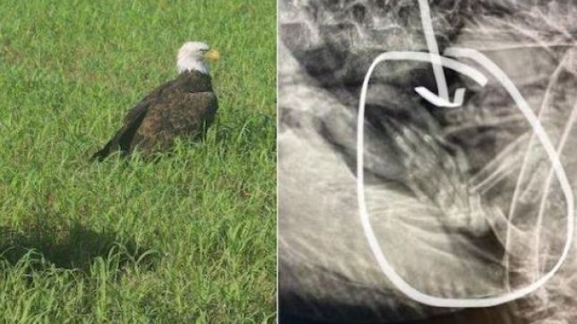 Ave símbolo dos EUA acabou resgatada por especialistas. Raio-x mostrou pata de mamífero não digerida no estômago do animal