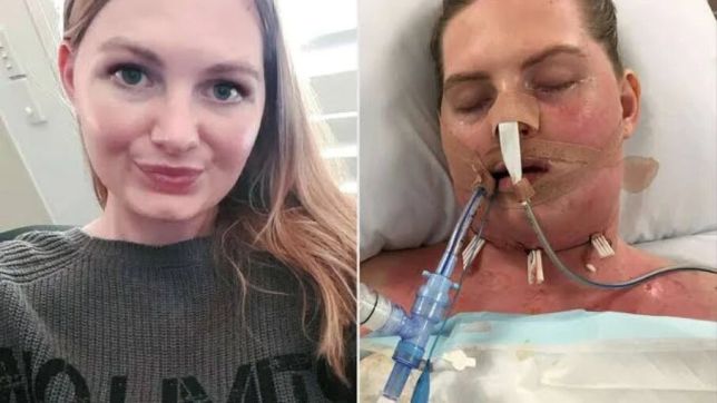 Os primeiros sintomas da mulher, chamada Caitlin Alsop, foram de uma erupção cutânea no rosto. Ela foi a alguns médicos tentando descobrir os motivos, mas não encontrou nada.