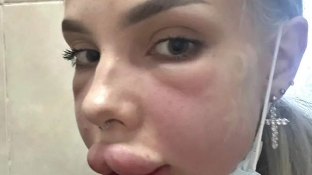 Depois de sofrer a reação de horror, ela foi levada para o hospital de ambulância. As imagens que ela tirou da reação do pesadelo mostram seus lábios tão inchados que ficaram "pendurados no rosto". Tanto o lábio superior quanto o inferior tinham inchado tanto que a mulher não conseguia fechar totalmente a boca.