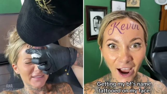 A influenciadora Ana Stanskovsky, de 27 anos, postou um vídeo no TikTok em que ela aparece sendo tatuada com o nome "Kevin" (Kevin Freshwater) em letras enormes na testa.