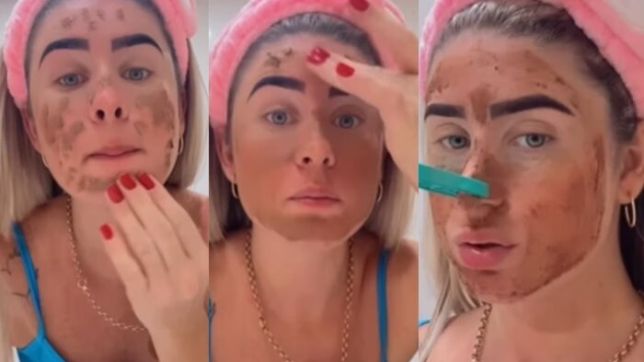 “Maior loucura que fiz na vida. Passei minhas fezes no rosto”, escreveu na legenda do vídeo. “Vi uma pesquisa sobre isso e resolvi tentar. Deu certo para mim, minha pele parou de escamar”, emendou.