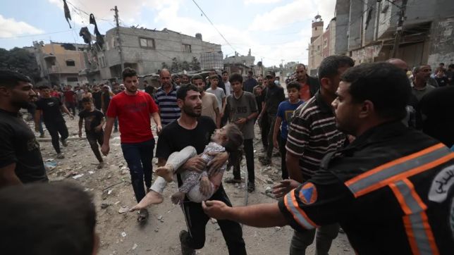 O Ministério do Interior de Gaza afirmou que ao menos 72 pessoas foram mortas e dezenas ficaram feridas em ataques de Israel contra edifícios residenciais em Khan Younis e Rafah, onde grande parte da população que pretende deixar o território palestino em direção ao Egito espera por uma resolução do impasse diplomático.