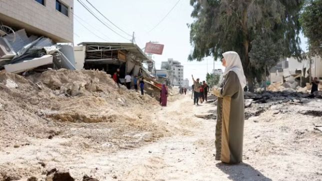 Mulher palestina observa destruição causada por ação militar de Israel em Tulkarm, região ocupada da Cisjordânia