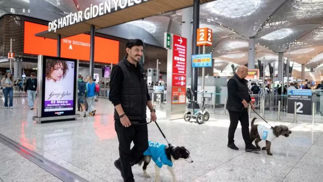 Como parte de um programa para melhorar a experiência e reduzir o desgaste emocional dos passageiros no Aeroporto Internacional de Istambul, na Turquia, a zona de embarque internacional conta com cães que abanam os rabos em sinal de boas-vindas. Há dois meses, os pequenos Kuki, um lagotto romagnolo de pelagem marrom, de 6 anos, e Alita, um border collie preta e branca, de um ano e meio, batem ponto por lá em turnos alternados com outros três animais.
