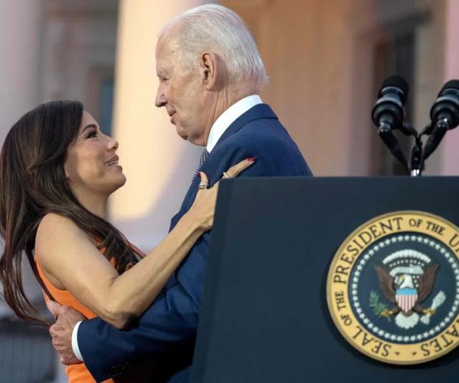 Internautas apontam mão boba de Joe Biden em abraço na atriz Eva Longoria