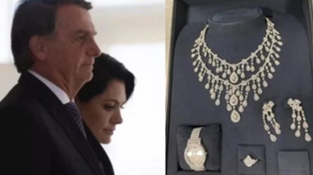 Apenas o conjunto de joias destinado a Michelle foi avaliado em R$ 4.150.584. E tem mais na caixa de joias, como um relógio todo de diamantes, da pulseira até o mostrador, e avaliado em R$ 1 milhão. Observa uma perita da Polícia Federal ouvida pelo “Fantástico”, programa da Rede Globo de Televisão:
