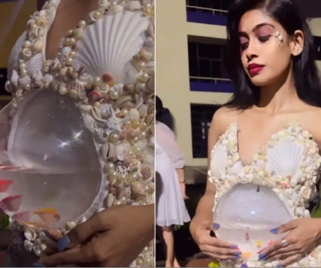 Modelo indiana usa vestido com aquário cheio de peixinhos e causa polêmica