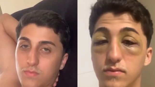Em vídeo publicado no TikTok, o jovem Gustavo Henrique aparece com a região dos olhos bastante inchada, com uma coloração verde e roxa