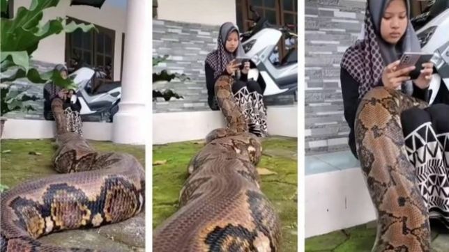 Não é para menos. Muitos ficam chocados e boquiabertos com as imagens. No vídeo, uma jovem olhando um smartphone (ou um tablet) nas mãos aparece com uma enorme píton, que se aninha no colo da adolescente: