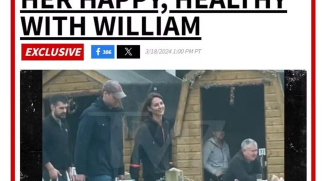 Kate Middleton, princesa de Gales, apareceu num vídeo divulgado nesta segunda-feira (18) ao lado do príncipe William, apontou o site americano TMZ.