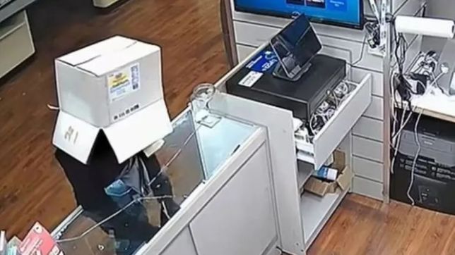 Mas um bandido não planejou apropriadamente a sua ação e improvisou com uma caixa de papelão ao furtar celulares e dinheiro de uma loja de conserto de telefones no sul da Flórida nas primeiras horas da manhã do último sábado (3/6).