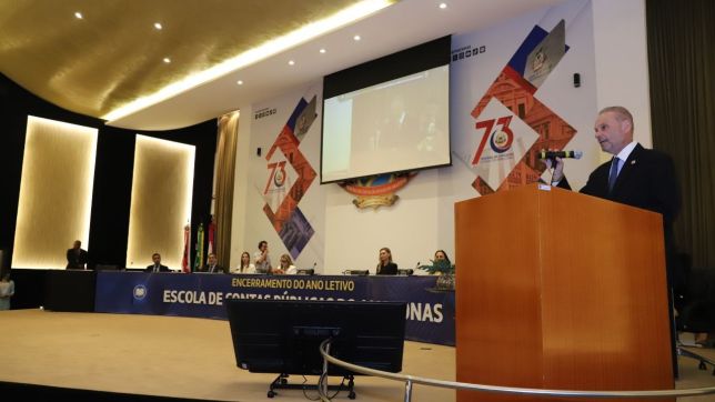 Marcado por lançamentos de peças editoriais e concessão de homenagens, o encerramento do ano letivo da Escola de Contas Públicas do Amazonas do Tribunal de Contas do Estado do Amazonas (ECP/TCE-AM) aconteceu, na manhã desta sexta-feira (24), no Auditório da Corte de Contas, com a presença de diversos instrutores, cursistas, servidores, estagiários e demais autoridades.