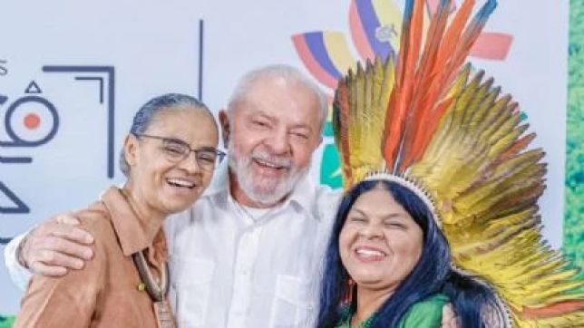 Marina Silva, Lula e Sônia Guajajara. Ministras do Meio Ambiente e Mudança Climática e dos Povos Indígenas com o presidente Lula