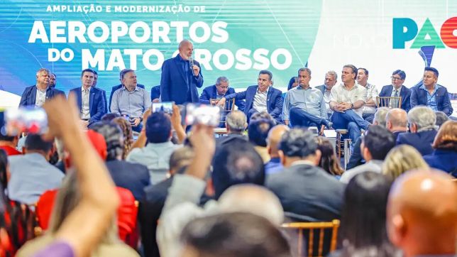 O presidente Luiz Inácio Lula da Silva participou nesta quarta-feira (31) da entrega de obras de ampliação e modernização de quatro aeroportos em Mato Grosso: Cuiabá, Sinop, Rondonópolis e Alta Floresta. As reformas incluem adequação de terminais, pátios e pistas. As obras custaram R$ 570 milhões, com investimentos de R$ 372 milhões do Novo PAC, sendo R$ 317,2 milhões financiados pelo Banco Nacional de Desenvolvimento Econômico e Social (BNDES). Em 2023, os quatro aeroportos movimentaram cerca de 3,5 milhões de passageiros, entre embarque e desembarque.
