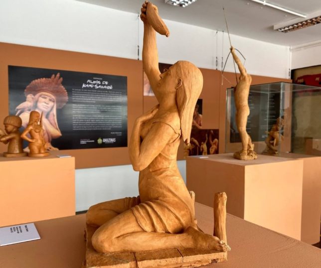 Artistas apresentam técnicas de desenho e esculturas em exposição no Liceu de Parintins
