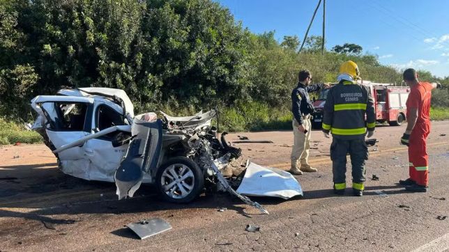 Carro destruído após acidente na BR-290 em Arroio dos Ratos