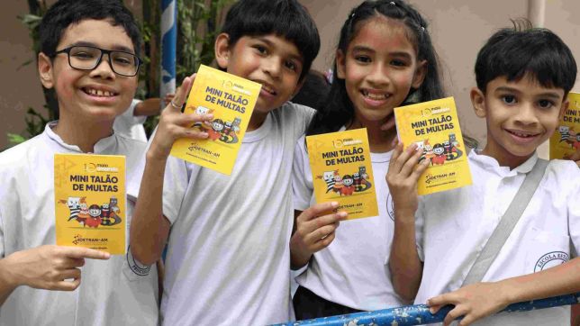 A atividade, que visa gerar conscientização social sobre a importância da segurança no trânsito por meio da campanha Maio Amarelo, está sendo desenvolvida nas escolas da rede estadual com ações educativas, como palestras e brincadeiras, em parceria entre a Secretaria de Estado de Educação e Desporto Escolar e o Detran-AM.