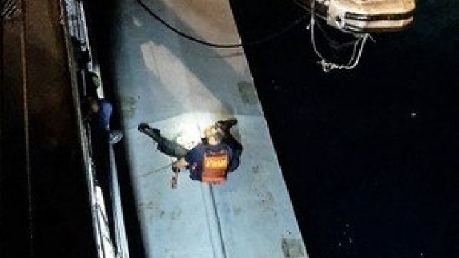 Imagens compartilhadas pelas autoridades mostram uma embarcação escura em terra firme, rodeada de centenas de pacotes de drogas camuflados com etiquetas da Toyota, e, no centro, três homens detidos.