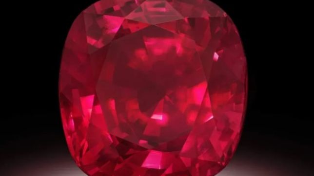 Um rubi de 55,22 quilates se tornou a maior e mais valiosa joia desse tipo já vendida em leilão, arrecadando US$ 34,8 milhões na quinta-feira (8).
