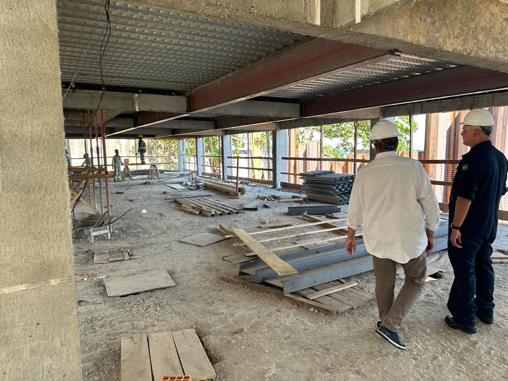 Durante visita ao canteiro de obras, o vice-almirante Thadeu Lobo, o capitão de mar e guerra Wilson Nogueira e a tenente Raquel Falcão conheceram detalhes do projeto desenvolvido pelo Instituto Municipal de Planejamento Urbano (Implurb), acompanhados do diretor de Planejamento Urbano, o arquiteto e urbanista Pedro Paulo Cordeiro.