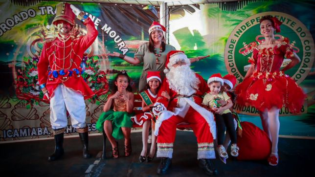 A Mocidade Independente do Coroado encheu os corações de adultos e crianças de alegria, neste sábado (23/12). Os sambistas da tradicional escola de samba percorreram as principais ruas do bairro Coroado, localizado na Zona Leste de Manaus, levando a magia natalina. O Papai Noel esteve presente assim como Anne Moura, a homenageada pela agremiação no próximo ano.