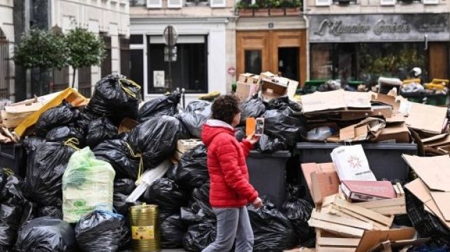 Sacos de lixo se acumulam neste domingo por Paris, onde 5,4 mil toneladas de dejetos não foram recolhidas devido à greve dos garis, que pelo sétimo dia consecutivo expressam seu repúdio à Reforma da Previdência, segundo a prefeitura.