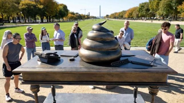 Uma estátua de bronze de cocô na forma de emoji surgiu na última quinta-feira (24/10) National Mall, nas proximidades do Capitólio, em Washington (EUA).