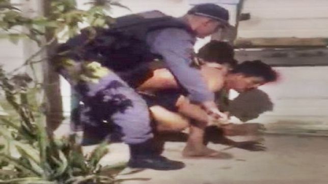 Depois do espancamento popular o bandido foi algemado e levado preso