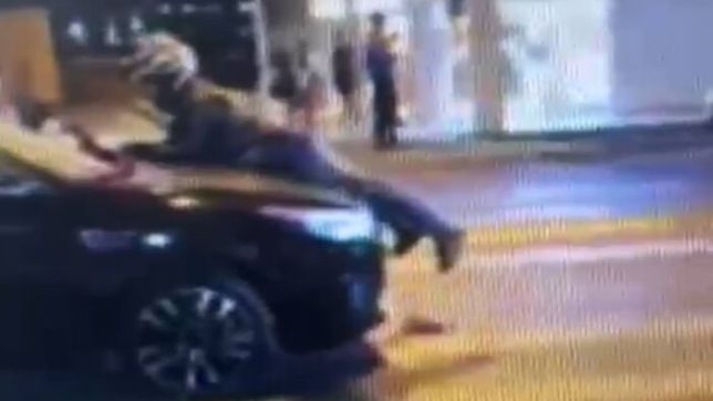 Para evitar que o motorista fugisse, o motociclista subiu no capô do automóvel e lá permaneceu até a chegada da polícia.