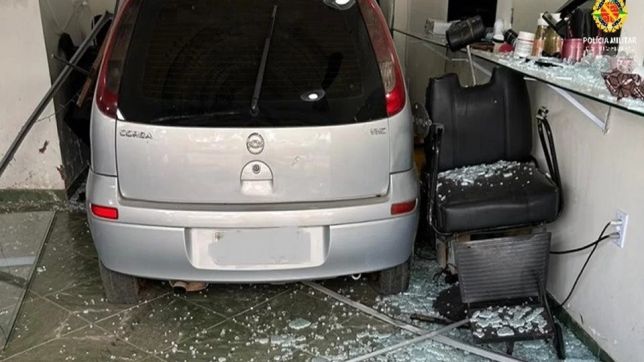 O motorista embriagado perdeu o controle do seu veículo, invadiu um salão de beleza, quebrou a vidraça e deixou duas mulheres feridas