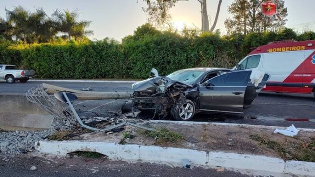 Um jovem de 26 anos, motorista de um veículo Volkswagen Passat marrom ficou ferido após colidir contra um poste de iluminação pública e derrubar a estrutura, na manhã deste domingo (26/5). A ocorrência aconteceu na Ponte JK.