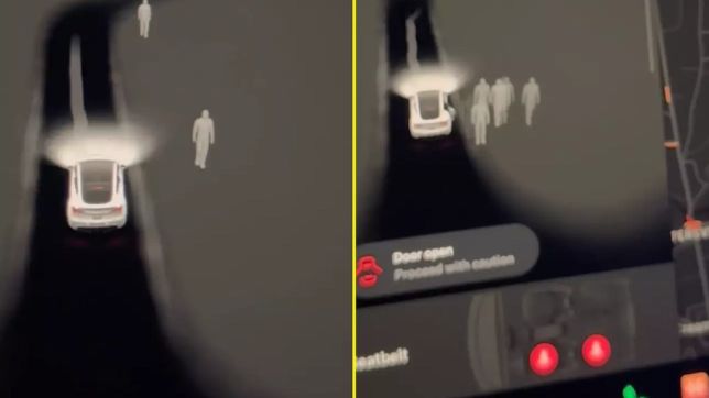 Para quem não sabe, os Teslas são capazes de exibir, na tela central, informações sobre objetos próximos – incluindo pedestres e outros veículos –, graças a uma série de sensores.