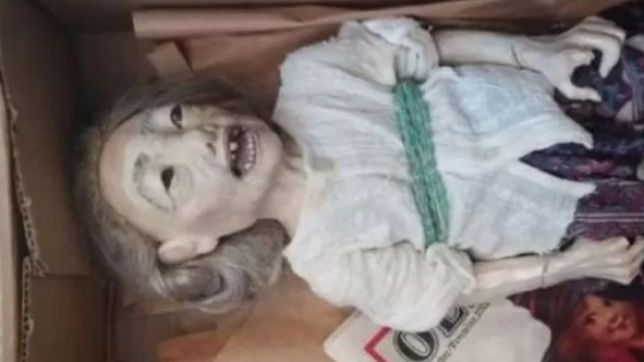 Uma mulher levou um susto grande depois de se deparar com uma boneca "amaldiçoada" quando estava procurando por "tesouros" em uma feira de móveis. Ela se aventurou no porão de uma casa desconhecida, que estava com móveis à venda, quando achou o objeto.