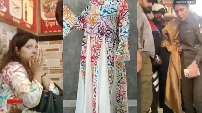 A paquistanesa, que não foi identificada, usava um vestido no qual havia palavras em árabe. Para os furiosos manifestantes, as palavras seriam de versos do "Corão", o livro sagrado do Islã. Um deles chegou a ameaçar a mulher de decapitação, de acordo com o "Daily Star".