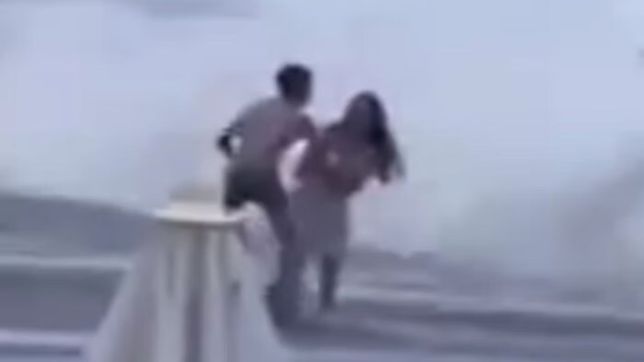 Imagens que circulam nas redes sociais mostram o casal caminhando na praia. No vídeo, é possível ver o mar agitado e as ondas fortes.