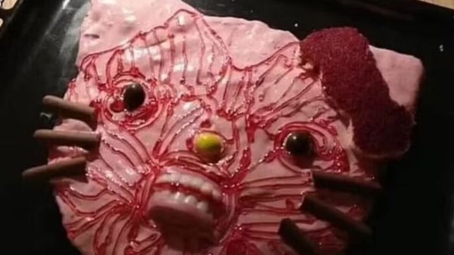 Um pedido um quanto assustador. Uma mexicana identificada como Kenia Ramos usou as redes sociais para denunciar uma entrega de bolo que não saiu como esperado. Na semana passada, ela encomendou um bolo em formato da cabeça da Hello Kitty, mas acabou recebendo uma versão “não oficial” da sobremesa.