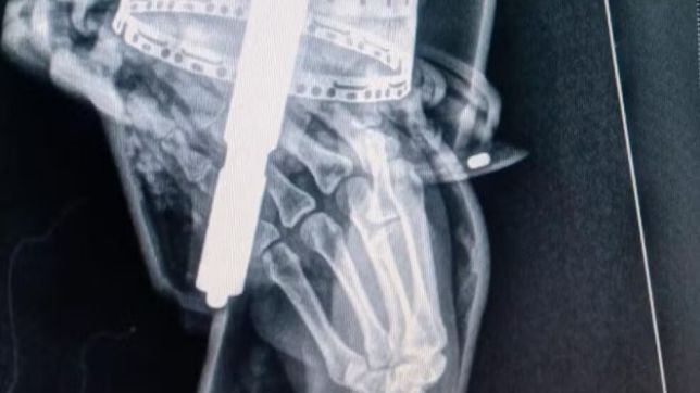 Segundo a corporação, a vítima estava sentindo muita dor e foi levada com o equipamento ainda preso no braço para o hospital, para que fosse sedada.