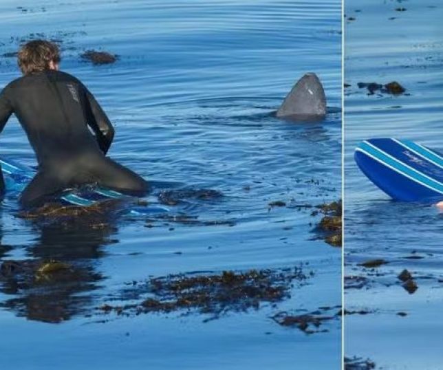 Surfista se assusta com 'barbatana de tubarão', mas se depara com surpresa um instante depois