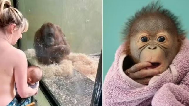 Irlandesas que estavam amamentando correram para ajudar uma mamãe orangotango que não sabe como alimentar seus bebês – demonstrando pessoalmente sua técnica através do vidro que as separava, em um esforço incrivelmente comovente no Zoológico de Dublin (Irlanda).