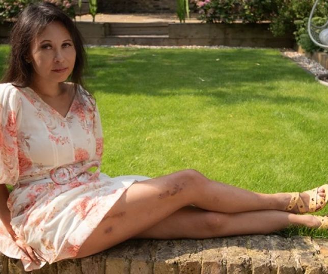 Mulher faz alongamento de pernas e prego de metal atravessa ossos