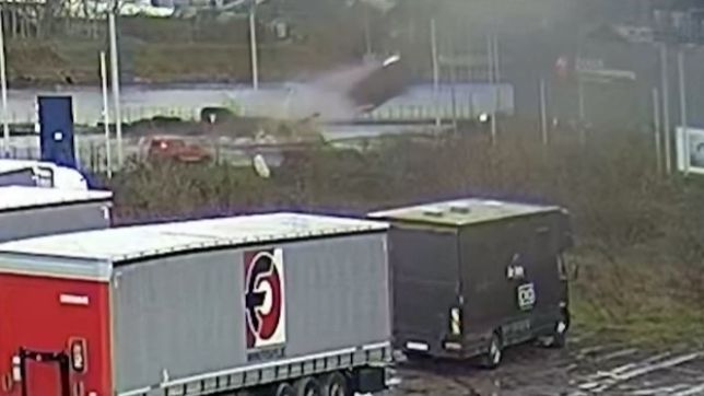 Na Bélgica, imagens de câmera de segurança registraram um acidente que fez um carro “voar”.