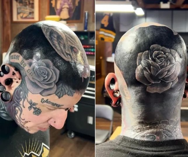 Canadense quase sem espaço na pele para tatuar raspa o cabelo para cobrir o couro cabeludo