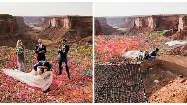 Um casal de norte-americanos decidiu celebrar o casamento da forma mais aventureira possível: a cerca de 120 metros de altura, no meio do deserto de Moab, em Utah, nos Estados Unidos. Para relembrar a época em que se conheceram e se apaixonaram, Ryan Jenks e Kimberly Weglin decidiram voltar ao local onde se encontraram pela primeira vez, desta vez para unir laço para sempre.