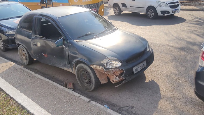 Um carro modelo GM/Corsa, preto, que também era usado pela quadrilha estava cheio de bolsas, telefones celulares, jóias e outros objetos que os bandidos haviam roubado das vítimas durante o arrastão.