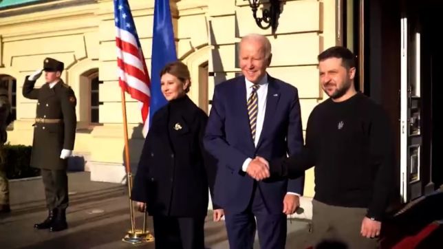 No sol da manhã e com sorriso no rosto, o presidente dos Estados Unidos, Joe Biden, desembarcou em Kiev nesta segunda-feira (20) e encontrou o líder Volodymyr Zelensky para discutir a situação militar da Ucrânia. Com direito a promessa de ajuda de R$500 milhões de dólares e chegada em comboio de 10h, Biden também anunciou que fará sanções conta a ofensiva da Rússia.