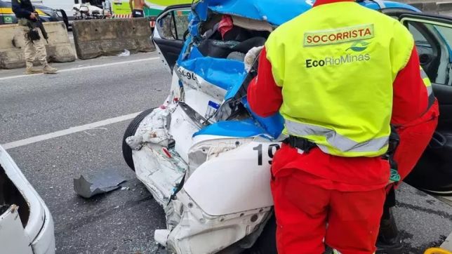 O coletivo levava torcedores envolvidos em uma briga generalizada na Rodovia Presidente Dutra quando foi apedrejado e colidiu contra o veículo das forças de segurança.