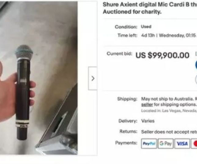 Em leilão, microfone arremessado por Cardi B em plateia recebe lance de R$ 488 mil