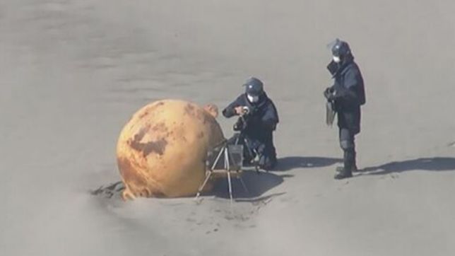 A esfera metálica de cerca de 1,5 metros de diâmetro de cor marrom-alaranjada foi alvo de uma operação do esquadrão antibombas da polícia japonesa, que chegou a isolar a área para examinar o objeto.