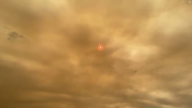 No vídeo, é possível ver uma nuvem de fumaça sobre a região de Corumbá, conhecida como capital do Pantanal. O horizonte foi tomado pelo cinza, e o sol ficou vermelho, o que meteorologistas atribuem à poluição das queimadas.
