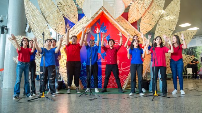 A movimentação cultural no Aeroporto Internacional Eduardo Gomes atraiu atenção dos mais diversos públicos na última segunda-feira (03/06), isto porque a mistura de boi-bumbá com rock and roll mostrou que dois opostos podem se complementar. O projeto Bumba Meu Rock já é conhecido pelo público amazonense desde 2019, desta vez a montagem foi realizada para receber o público que retornou da 56º Festival Folclórico de Parintins numa atividade feita pelos alunos de coral infanto-juvenil do Liceu de Artes e Ofícios Claudio Santoro.